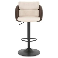 Wir stellen den Kunstleder Barhocker Detroit vor, ein klares und zeitgemäßes Modell, das das Beste aus modernem Design bietet. Der Sitz vereint Komfort mit gepflegtem Stil und verfügt über eine dichte Polsterung, die mit strahlend weißem Kunstleder bezogen ist. Die hohe Rückenlehne bildet einen optischen Kontrast zum glatt verarbeiteten Sitzpolster und den umlaufenden Seiten. Ein Gaslift-Mechanismus. Dieses raffinierte Design ermöglicht eine 360 ° -Drehung und eine einstellbare Höhe, was einen einfachen Zugang zu Ihrer Bar bedeutet. Die Fußstütze hat eine dreieckige Form. Zur Pflege Ihrer Bodenfläche dient ein passender runder Boden mit Schutzrand.